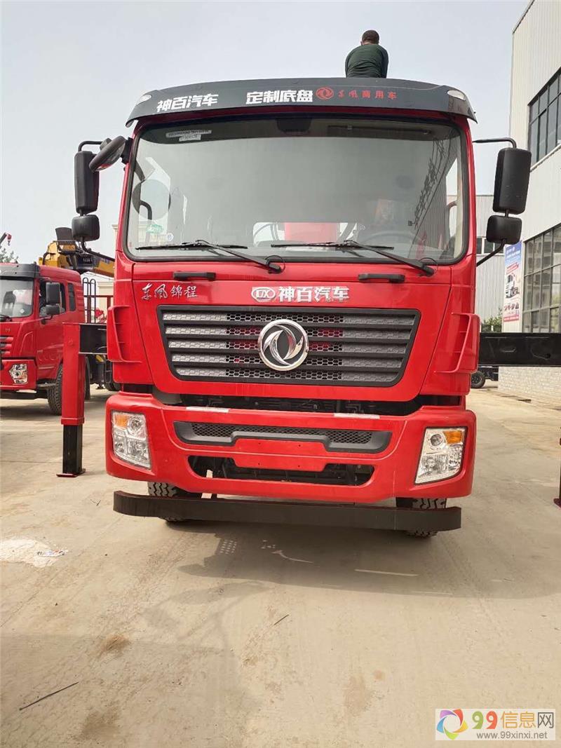 东风随专后八轮长兴12吨随车吊,神百定制随车吊专用底盘车辆配置:D913驾驶室带遮阳板,两点悬浮,玉柴240马力,法士特9档变速箱带高低档,11.00R20钢丝轮胎,轴距5900+1350,300mm直通三层大梁,配长兴12吨4节直臂吊机,上操作,方形支腿,工作半径15.5米,车厢尺寸:8500*2400*550...