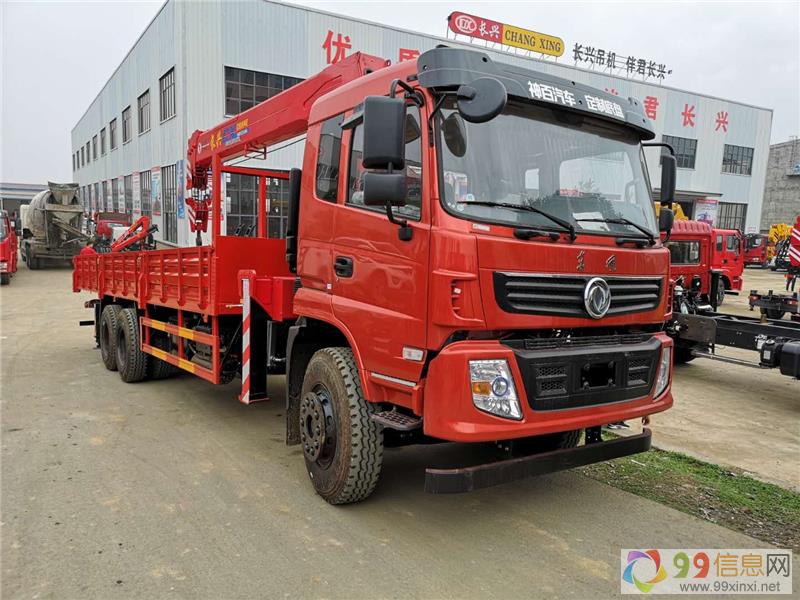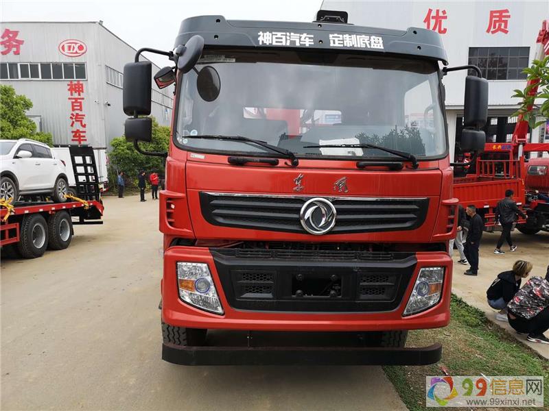东风随专后八轮长兴12吨随车吊,神百定制随车吊专用底盘车辆配置:D913驾驶室带遮阳板,两点悬浮,玉柴240马力,法士特9档变速箱带高低档,11.00R20钢丝轮胎,轴距5900+1350,300mm直通三层大梁,配长兴12吨4节直臂吊机,上操作,方形支腿,工作半径15.5米,车厢尺寸:8500*2400*550...